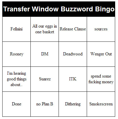 giving away your very own free cut out and keep Transfer Window Buzzword Bingo!