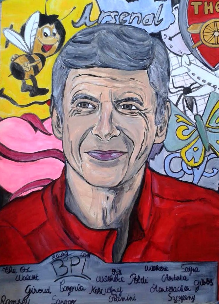 As Laury explains: “I decided to paint Wenger to show my support, for sure. I also to decided to be more original than I was before, wanted to use lots of colours to bring some “happiness” through a simple painting. I didn’t want to paint something which seemed sad and without any emotion.