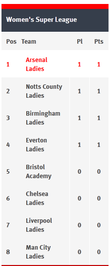 Beginning their 2014 WSL campaign with a draw was probably not the start Arsenal wanted, but that’s what they’ll have to make do with, as Alex Scott’s beautifully controlled volley (55th minute) cancelled out Jess Clark’s first half opener. It was an ultimately frustrating result after the Gunners’ second half dominance and chances, but there were glimpses of the new-look team starting to be more cohesive. It was an opening day of draws as Everton Ladies played out a goalless stalemate with Birmingham City Ladies. This is what the League table currently looks like.