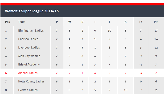 However, a loss against Chelsea Ladies in the following WSL game was a bit of a setback. Even Kelly Smith’s well-taken penalty was not enough for the Gunners to escape the 1-2 scoreline against the fellow Londoners who gained crucial points to keep the pressure on at the top. A victory was needed in the next game against bottom-of-the-table Everton, and Arsenal responded with a very crucial late win courtesy of keeper Emma Byrne saving a second half penalty and Alex Scott grabbing a winner in the 84th minute. This keeps them at 7 points from 7 games with half of the season yet to play. Birmingham Ladies sit at the top on 17 points, while Chelsea (14) and Liverpool (12) make up the rest of the top 3.