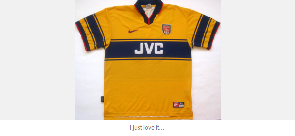 Well, after thinking on it, I decided, so today in my column I’d like to wax lyrical about my favourite Arsenal shirt, it is an Arsenal shirt that brings back fond memories; of famous victories and the promise of wonderful things to come.