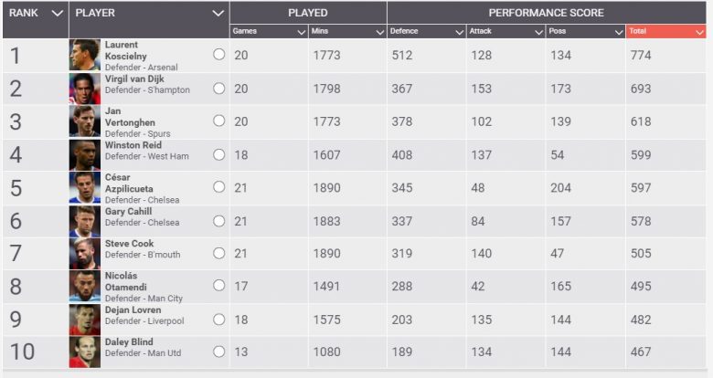 That is where the problem rises though. Apart from many Arsenal fans, there are many people out there in the world football who do not rate Lolo as the world-class player he is. Central defenders in the Premier league in recent times, who have been rated more highly by some than him include Toby Alderweireld, Virgil Van Dijk, Jan Vertonghen, Chris Smalling and Gary Cahill, yet upon stringent reviews of stats this season (see below) and of course Lolo totally outclasses all these candidates. Let us not talk of last season where with either the leaden-footed Mertesacker or the rash Gabriel he marshaled Arsenal along with Petr Cech to the records of joint-most clean sheets in the league and second least goals conceded.