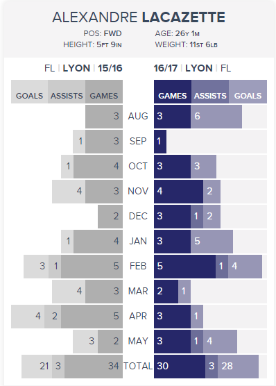 You’ve see videos, you’ve heard the hype. Here’s some statistical analysis of Lacazette’s time at Lyon, courtesy of our friends at KickOff.
