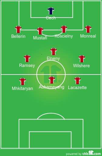 Mikhi and Aubameyang to play as old style inside forwards, with Ozil pulling the strings and Laca banging in the goals.
